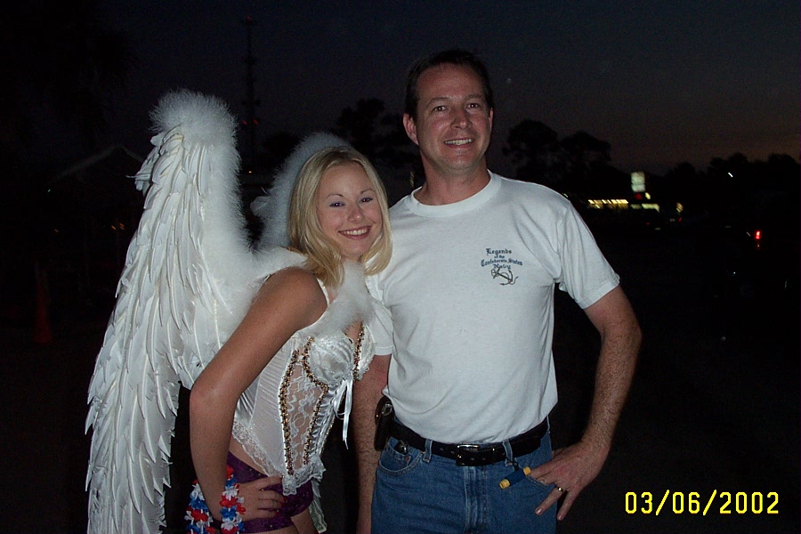 An Angel and yours truly This photo was taken 3-2003 at Bike week. the date on the digital camers was incorrect. Too much booze I guess. |