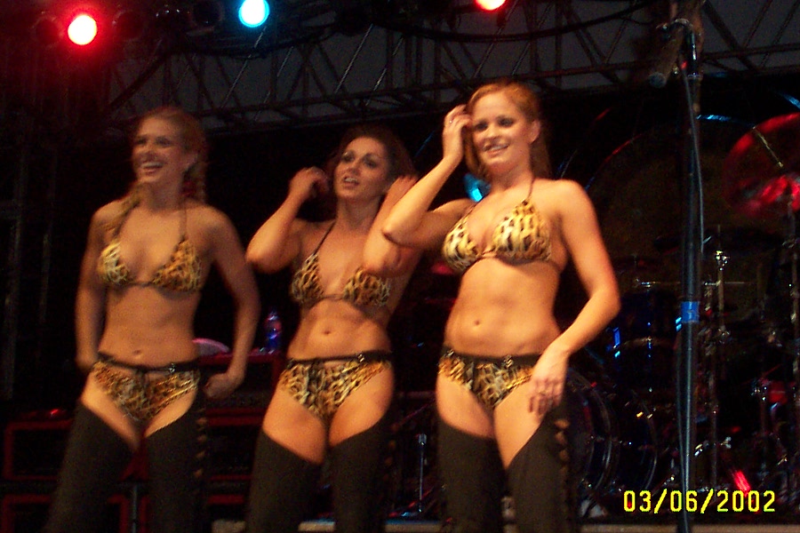 This shot is of a show Sharon and I got to see at Bike week 2003. The dancers are the wolrd famous Man show girls. Perhaps you have seen them bouncing on a trampoline? |